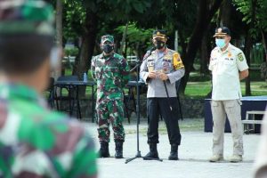 Sebelum itu, dilakukan apel bersama dalam rangka penerapan PPKM Level IV di Kota Banjarmasin di Lapangan Kamboja.