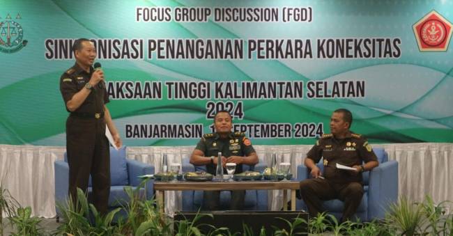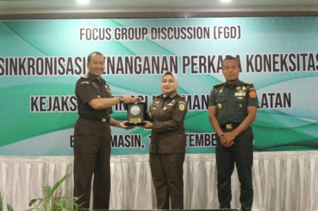 FGD ini mengakat tema “Sinkronisasi Penanganan Perkara Koneksitas”, dibukan Kepala Kejaksaan (Kajati) Kalsel, Rina Virawati SH, MH dihadiri unsur jajaran pimpinan Kejati Kalsel beserta Kepala Kejaksaan Negeri (Kajari) se-Kalsel.