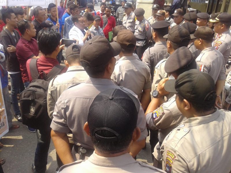 Awalnya massa hanya diperbolehkan di depan pagar belakang Mapolda Kalsel Jalan DI Panjaitan. Dan setelah Direktur Sabhara, Kombes Pol M Khosin didampingi Wadir Intel, AKBP Decky Hendarso di lokasi mewakili Kapolda Kalsel, diperintahkan pagar dibuka.
