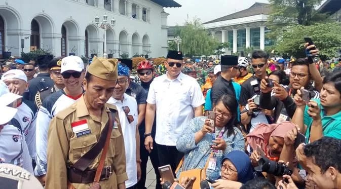 Ditanya wartawan usai menghadiri acara Bandung Lautan Sepeda, Jokowi enggan berkomentar seputar kritik yang datang kepadanya soal politik genderuwo.