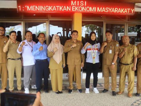 Kedatangan Yunia disambut Wabup Andi Rudi Latif dengan mengalungkan bunga di Kantor Bupati Kotabaru, Senin (6/3/2023), sebagai bentuk apresiasi atas prestasi internasional yang berhasil diraihnya.