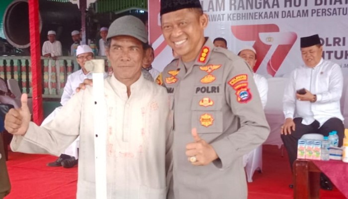 SuarIndonesia – Asmadi, seorang pedagang pentol kaget mendapatkan gerobak gratis dari Kapolresta Banjarmasin, Sabana Atmodjo Martosumito.