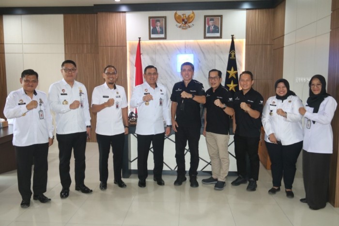 Kepala Kantor Wilayah Kemenkumham Kalsel, Taufiqurrakhman beserta jajaran menyambut kedatangan Direktur Utama Bank Kalsel, Fachrudin, dan timnya yang datang untuk mempererat tali silaturahmi.