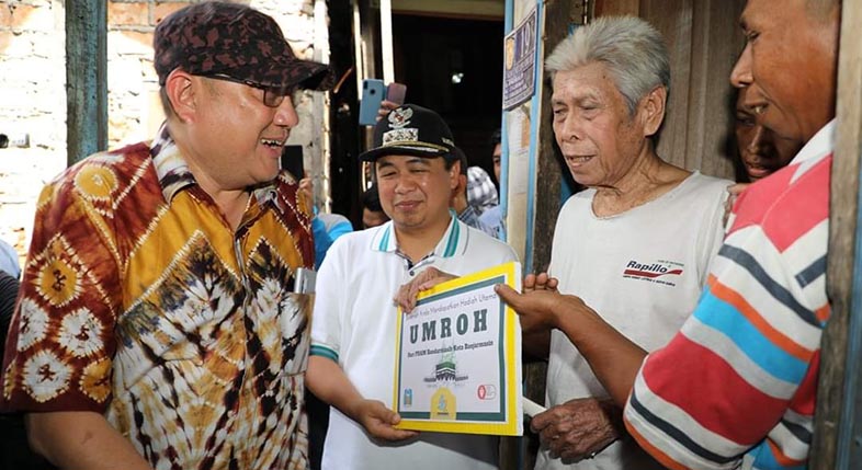 Kedatangan rombongan Walikota bersama Dirut PDAM Bandarmasih tersebut tidak lain adalah untuk menyerahkan hadiah ibadah Umrah kepada pria yang bernama Matjahidin (77), atas dedikasi dan ketaatannya dalam membayar rekening PDAM Bandarmasih.