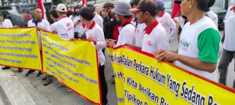 Itu dengan melakukan aksinya di depan Pengadilan Negeri (PN) Banjarmasin dikomando Ketua Kaki Kalsel, H Husaini.