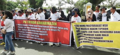 SuarIndonesia – Massa dari LSM (Lembaga Swadaya Masyatakat) KAKI (Komite Anti Korupsi Indonesia) Kalsel, melakukan aksi depan Kator Kejasaan Tinggi di Jalan D.I Panjaitan Banjarmasin, kamis (23/6/2022).
