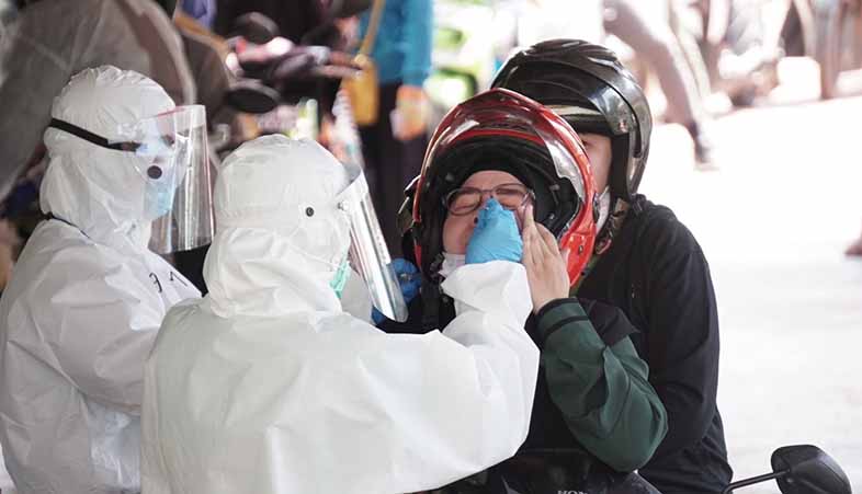 Tes swab untuk pengendara roda dua.(Foto/Dok.SuarIndonesia)