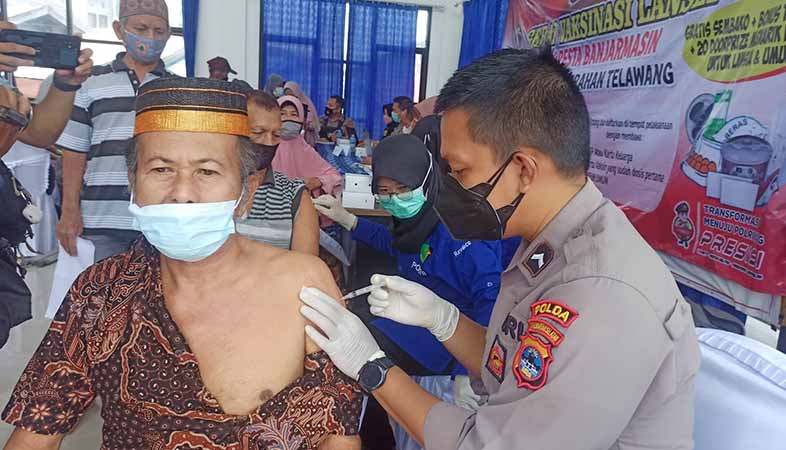 Salah satu kegiatan vaksinasi massal yang digelar Polda Kalsel. (Foto/Dok.SuarIndonesia)