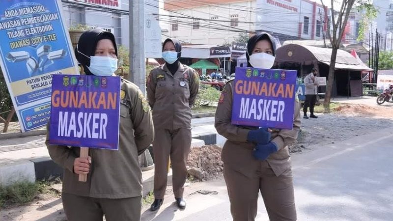 Penegakan protokol kesehatan oleh petugas Satpo-PP.(Foto/Dok.SuarIndonesia)
