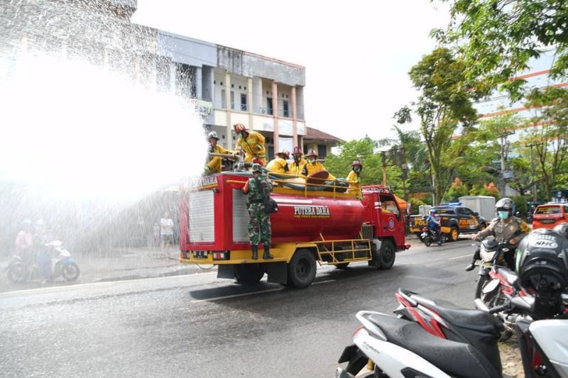 Penyemprotan disenfektan masih perlu untuk menekan sebaran Covid-19.(Foto/Dok.SuarIndonesia)