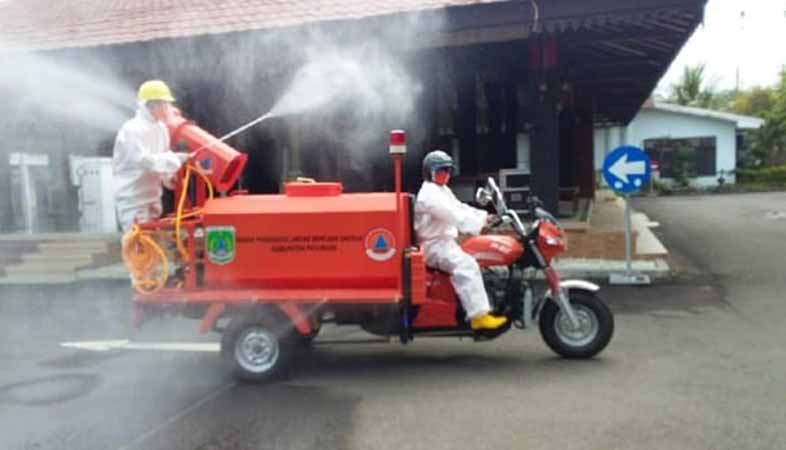 Penyemprotan disinfektan menggunakan sepeda motor.(Foto/Dok.SuarIndonesia)