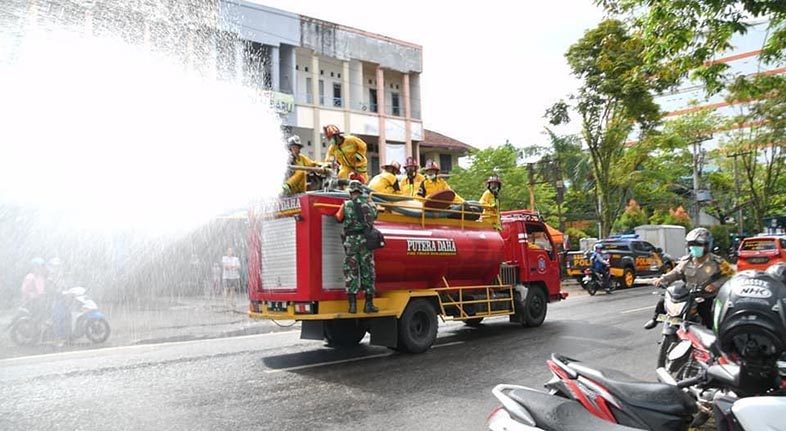 Penyemprotan desinfektan, salah satu upaya untuk menekan sebaran Covid-19.(Foto/Dok.SuarIndonesia)