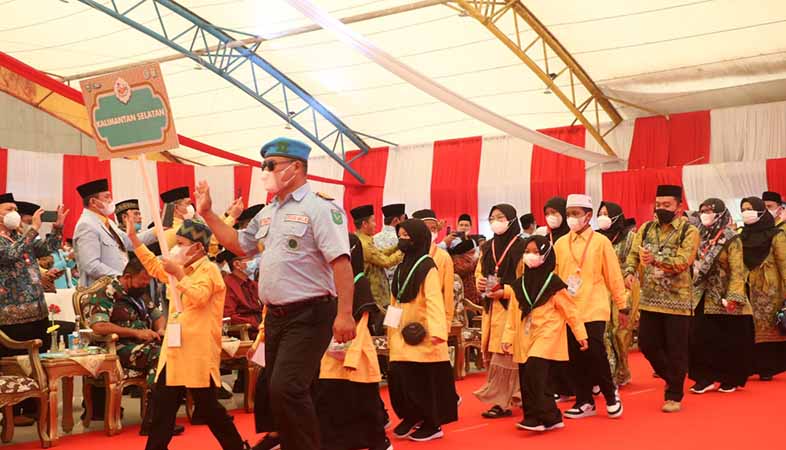 Sebelumnya, dilakukan defile oleh 28 kontingen FASI ke XI se Indonesia, termasuk Kafilah Provinsi Kalimantan Selatan yang kompak dengan seragam berwana kuning dan kain sasirangan, serta turut didampingi oleh sejumlah pelatih, pendamping dan official.