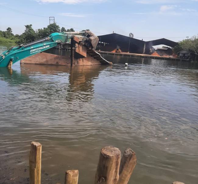 Aknirnya, kapal LCT ini secara perlahan tenggelam dan turut tertarik alat berat tersebut ikut tenggelam. (DO)