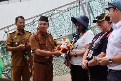 Kepala Dinas Pariwisata Kalsel, Muhammad Syarifuddin menyambut kedatangan Kapal Pesiar Coral Geographer berbendera negara Australia di terminal kedatangan Pelabuhan Tri Sakti Banjarmasin.