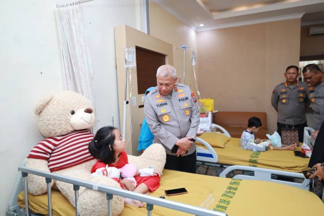 Melihat kondisi kedua anak tersebut, Kapolda Kalsel berempati memberikan perhatian khusus berupa pengobatan operasi gratis untuk keduanya.