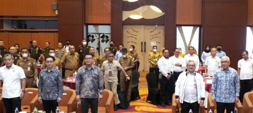 Asisten Perdata dan Tata Usaha Negara, Firmansyah Subhan, Direktur Reserse Kriminal Khusus Polda Kalsel Kombes Pol Suhasto, para Kajari Provinsi Kalsel, perwakilan para Kadisnaker Kabupaten dan Kota se-Provinsi Kalsel serta beberapa perwakilan Polres di lingkungan Polda Kalsel.