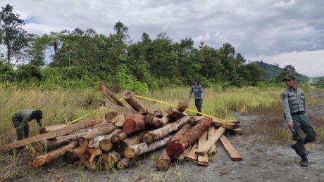 Sekitar 85 potong kayu berjenis Rimba Campuran yang terdiri dari 68 potong kayu olahan berbentuk plat dan 17 potong kayu bulat berhasil diamankan di Desa Gunung Raya dan Desa Emil Baru.