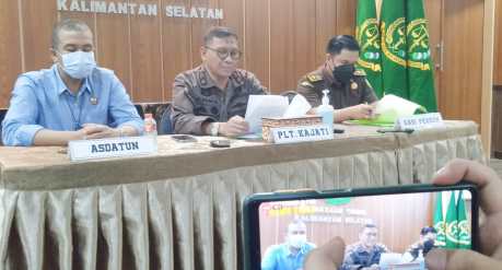Plt Kajati Kalsel, Ponco Hartanto (tengah) didampingi Asisten Datuan, M Firmansyah Subhan SH MH (kiri) dan Kapenkum Romadu Novelino SH.