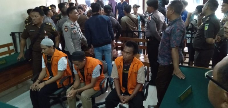 Tiga terdakwa yakni Hendra Gunawan alias Hendra Pisang, warga Pasar Lama, Chandra Lukmanul Hakim alias Hendra Tele, warga Jalan Sulawesi Gang Pare-Pare dan Taurat alias Torat, warga Jalan S Parman Kelurahan Pasar Lama.