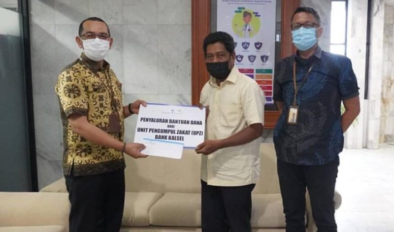 Bantuan diserahkan Sekretaris UPZ Bank Kalsel, H lawn, didampingi Bendahara UPZ, M Ihya U Basri, kepada Iskandar Zulkarnain di Kantor Pusat Bank Kalsel, Selasa (8/9).