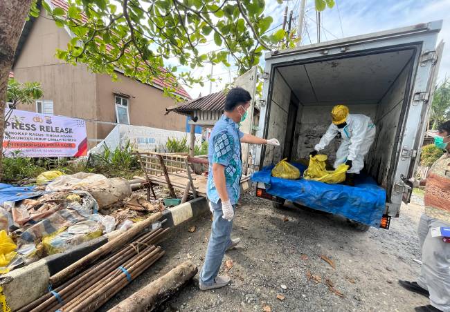 Semua limbah kemudian diangkut menggunakan mobil box dan segera dimusnahkan sesuai prosedur.