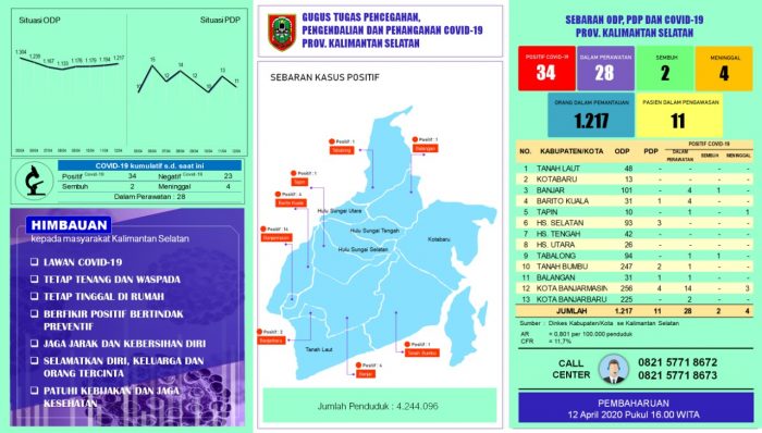 Disebutkan kasus positif baru adalah kscovid#30 yang sebelumnya Ulin 42 usia 55 dari Banjarbaru sudah menjalani perawatan hari ke empat dan masih mengalami sesak nafas.