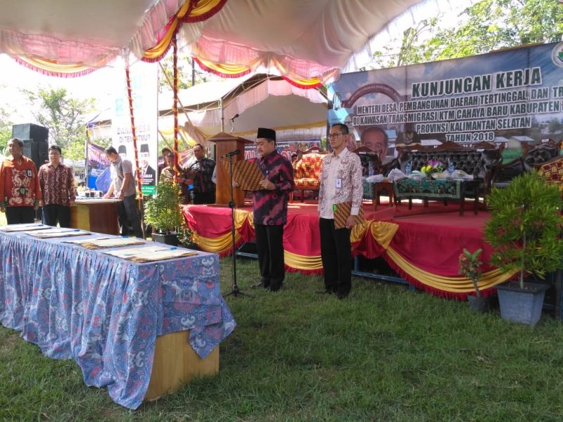 Kemendes PDT-Trans melalui Direktorat Jenderal Pengembangan Kawasan Transmigrasi (Dirjen PKT-Trans), M Nurdin menyampaikan pernyataan tersebut di sela meletakan batu pertama pembangunan Produk Unggulan Kawasan Perdesaan (Prukades) Rice Milling Unit (RMU) atau alat penggilingan padi di Kawasan Terpadu Mandiri Cahaya Baru Desa Jejangkit Kecamatan Jejangkit, Batola, Jumat (21/09/18).