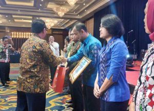 Penghargaan dari Sekretaris Jenderal Kemenkumham RI, Bambang Rantam Sariwanto diterima langsung Kepala Sub Bagian Keuangan dan Perlengkapan Kemenkumham Kalsel, Eko Herdianto yang diserahkan oleh Kepala Biro Keuangan Sekretariat Jenderal Kemenkumham-RI,Tarsono.