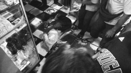 Dari keterangan Ahmad Rojani, warga yang turut mengevakuasi, saat datang korban sudah tergeletak di depan sebuah toko lantai dasar.