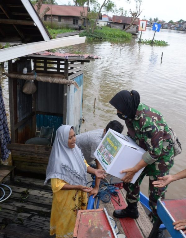 Kowad Kalsel ini membantu masyarakat terdampak banjir di pesisir Sungai Lulut Banjarmasin Timur, Selasa (14/12/2021).