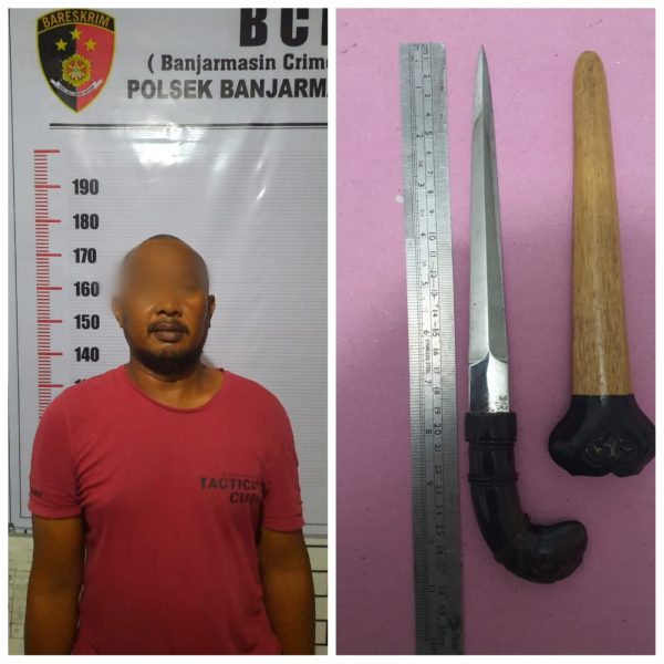 Di sana anggota mengamankan barang bukti berupa senjata tajam (sajam) jenis belati untuk mealkukan pengancan terhadap seorang anggota Polri bernama Dwi Bogi Yuniawan (20), warga Jalan Kampung Melayu Gang IAIN RT 11 Banjarmasin Tengah.