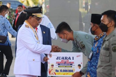 Piala bergilir Gubernur Kalsel tersebut diserahkan langsung oleh Gubernur, H Sahbirin Noor di akhir Acara Apel Gabungan Peringatan Hari Kemerdekaan Republik Indonesia ke-77 yang dilaksanakan di halaman Setda Provinsi Kalsel, pada Rabu (17/8/2022).