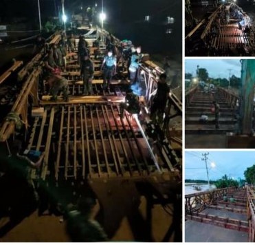 SuarIndonesia -Kodam VI/Mulawarman kerahkan prajurit perbaiki jembatan yang putus. Kerja cepat pemasangan jembatan bailey di jembatan Tabanio 1 Kabupaten Tanah Laut oleh Prajurit Denzipur 8/GM dibantu oleh prajurit Kodim 1009/Pelaihari.