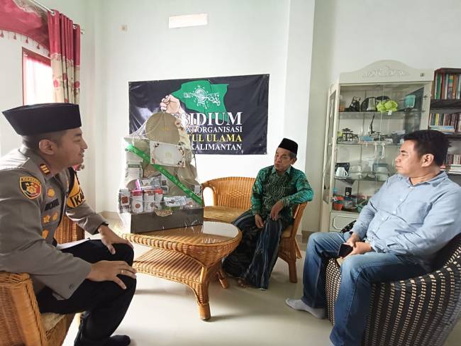 Kapolsek Banjarmasin Timur, AKP Morris Widhi Harto melakukan kunjungan silaturahmi dengan Ketua Rabitha Melayu Banjar, KH. Syarbani Khaira.