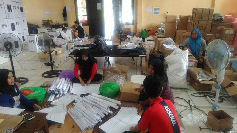 “Logistik KPU sudah siap, sekarang pengesettan, memastikan selain surat suara, sampul, form, hampir seratus item, itu yg diatur, dimasukkan dalam kota juga peralatan lain, ini sudah mulai,” ujar Heriwijaya.