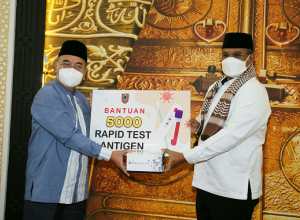 Pada Safari Ramadhan di Kabupaten HSS ini, Safrizal kembali menyerahkan bantuan secara simbolis berupa 5.000 rapid test.