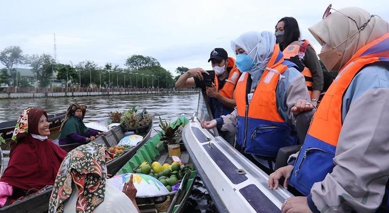 Hari kedua kunjungannya di kota berjuluk seribu sungai, istri Menteri Pariwisata dan Ekonomi Kreatif dan Kepala Badan Pariwisata dan Ekonomi Kreatif, Sandiaga Salahuddin Uno, bersama Walikota Banjarmasin H Ibnu Sina, dan Ketua Dekranasda Kota Banjarmasin, Hj Siti Wasilah mengunjungi beberapa destinasi wisata, di antaranya ke Pasar Terapung Siring Menara pandang Banjarmasin, dan Rumah Anno 1925 yang merupakan stand produk-produk kreatif para pengrajin binaan Dekranasda Kota Banjarmasin, Jumat (15/10/2021).