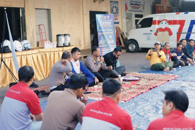 Kegiatan dilakukan secara tatap muka antara petugas dan para pengemudi kurir, guna menyampaikan pesan penting terkait keselamatan berkendara.