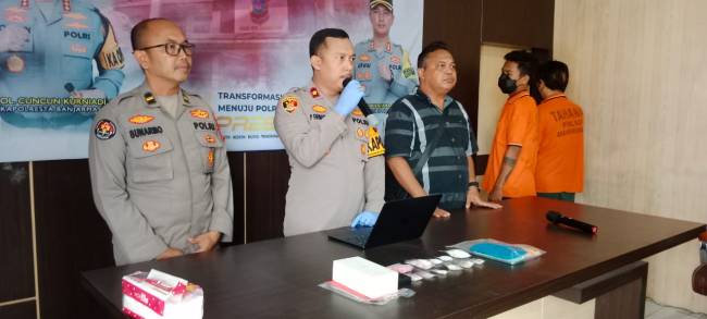 “Anggota menyita barang bukti 46 paket jenis sabu berat bersih 60,68 gram, 40 butir ekstasi logo burung hantu warna pink dengan berat bersih 17,3 gram, satu buah timbangan digital dan lainnya,” kata Kapolsek Banjarmasin Barat, Kompol Pujie Firmansyah didampingi Kanit Resekrim, Ipda Marzun Koso SH, Kasi Humas Polresta, Ipda Sunarmo, saat jumpa pers Jum’at (9/5/2025).