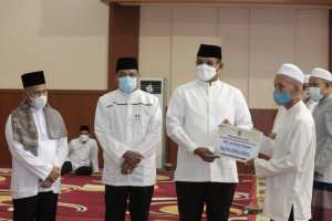 Sebelum buka puasa bersama, Pj Gubernur menyerahkan 5.000 dosis rapid test antigen, dana hibah kepada Mesjid Rakha senilai Rp 1 miliar, Mesjid Attaqwa sebesar Rp50 juta, Intisarul Mubaraq Rp 50 juta, dan MTs Assalam Mamar Rp50 juta.