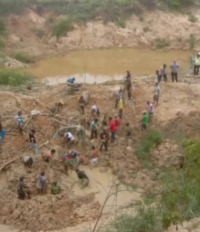 Dari keterangan, pada waktu itu para pekerja sedang beraktivitas mendulang, mungkin ada delapan, dan tujuh selamat, namun satu tertimbum. Proses pencarian masih berlangsung.
