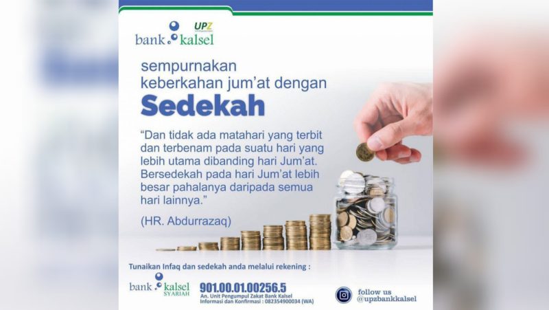 Sahabat Kalsellenials mari raih keberkahan di hari Jumat yang mulia ini dengan sedekah.