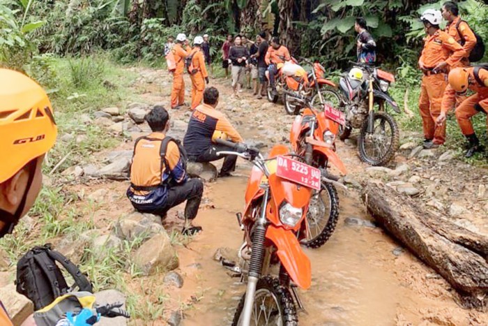 Para relawan asal Kabupaten Paser dan sekitarnya juga turut membantu proses evakuasi mengingat lokasi longsor hanya bisa diakses menggunakan kendaraan roda dua.
