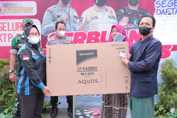 Ada lima peserta vaksin yang mendapat hadiah diantaranya 1 unit Kulkas, 1 unit Mesin Cuci, 2 unit TV 42 Inch dan 1 buah Setrika.