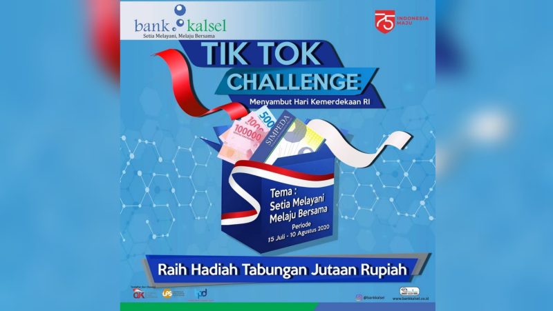 SuarIndonesia – Upload video Tiktok kalian menggunakan atribut yang mencerminkan Hari Kemerdekaan dan mencantumkan logo dan tagline baru Bank kalsel “Setia Melayani, Melaju Bersama”