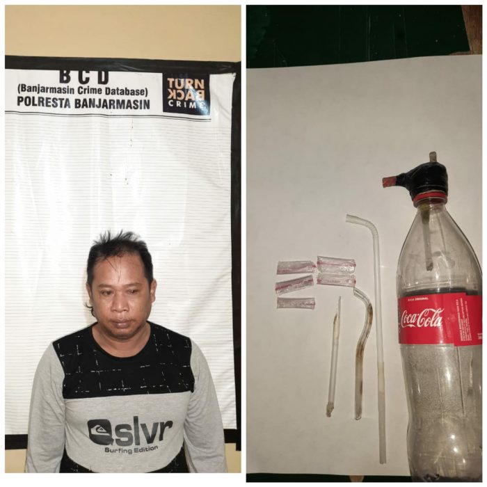 Tersangka diketahui beralamat Jalan SUngai Miai Luar RT 04 Banjarmasin Utara, dan disita lima paket kecil sabu sabu berat 0,18 gram, satu buah bong alat hisap sabu, satu buah pipet kaca, dan satu buah sedotan plastik. (DO)