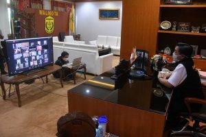 Walikota Banjarmasin, H Ibnu Sina juga hadir dalam webinar melalui video conference, di ruang kerjanya.