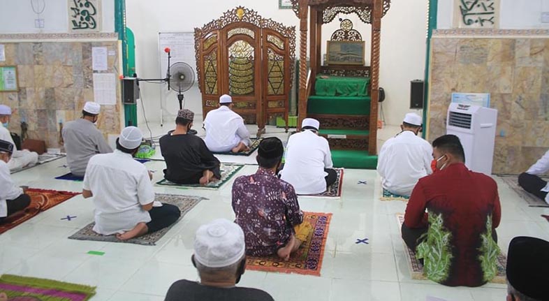 H Ibnu Sina bersama para pejabat lingkup Pemko Banjarmasin melaksanakan Shalat Jumat di masjid tersebut, sekaligus untuk memastikan setiap tempat ibadah yang ada di kota ini telah menerapkan aturan protokol kesehatan.