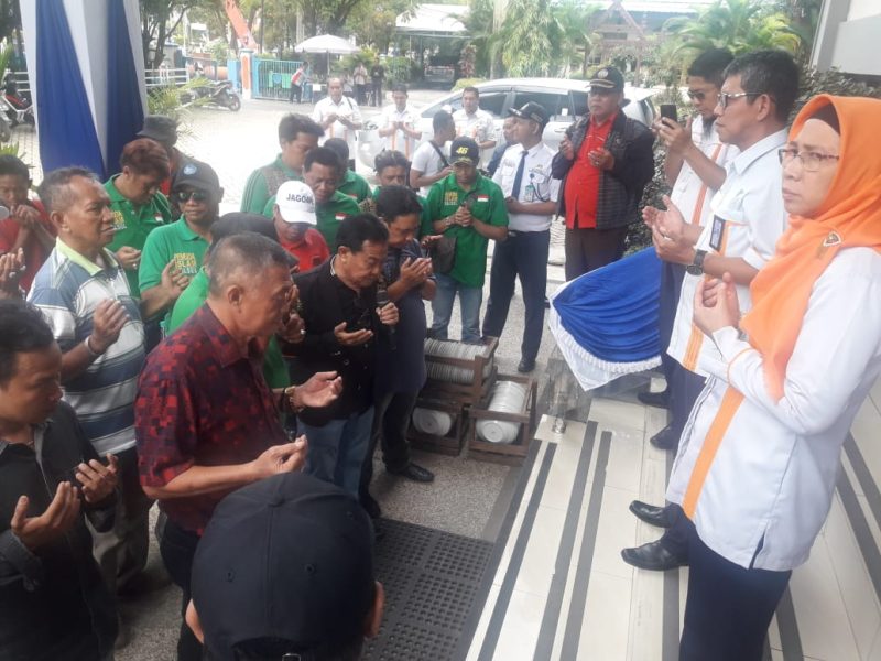 Kedatangan massa saat itu disambut Direktur Umum PDAM Bandarmasih, Farida dan Humas setempat, Noor Wahid, dan bersama massa sempat doa bersama atas MIlad-nya PDAM Bandarmasih